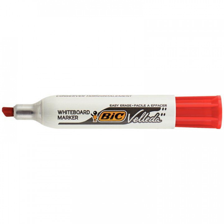 Marqueur tableau blanc Velleda 1781 pointe biseautée rouge. Encre cétone, corps métal. Marqueur pour tableaux blancs, effaçable à sec, pointe biseautée, largeur de trait 3.5 à 5.5 mm