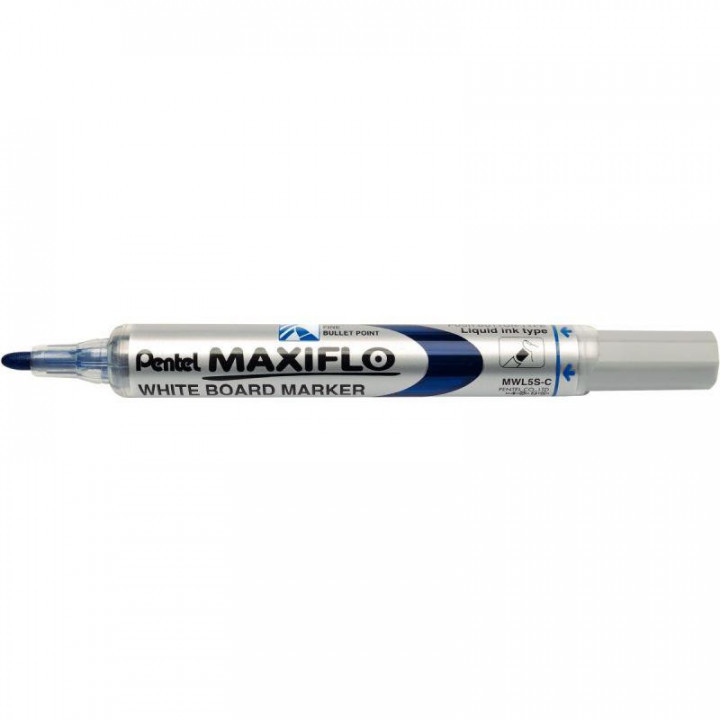 Marqueur tableau blanc Maxiflo pointe ogive 4mm bleu. Marqueur pour tableaux blancs pointe ogive fine avec systéme exclusif de réencrage par bouton poussoir bleu