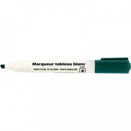 Marqueur tableau blanc Like pointe biseautée vert. Non toxique. Sans toluène ni xylène. Convient également pour les "paper boards" (ne traverse pas le papier).