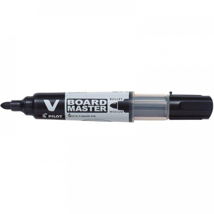 Marqueur tableau blanc V-Board Master pointe ogive 2,3mm noir. Encre liquide très lumineuse et débit régulier. Rechargeable. Fabriqué à 80% à base de plastique recyclé (hors éléments consommables)