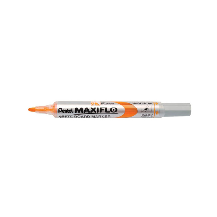 Marqueur tableau blanc Maxiflo pointe ogive 4mm orange. Marqueur pour tableaux blancs pointe ogive fine avec systéme exclusif de réencrage par bouton poussoir orange