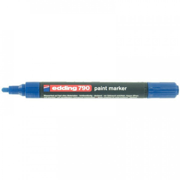 Marqueur peinture permanent E790 pointe ogive bleu. Encre peinture à trés fort pouvoir couvrant et à forte opacité.Ne contient ni xylène, ni toluène.(pas de matière inflammable, ni cancérigène). Offre une grande sécurité d'utilisation.Corps plastique.Tracé de 2 à 3mm. Encre non toxique.