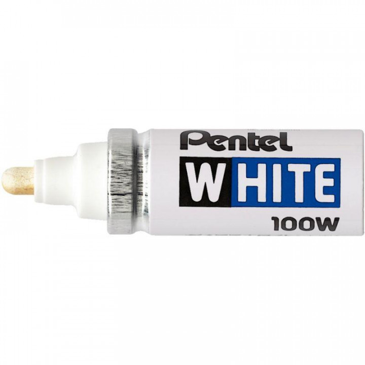 Marqueur 100W pointe large blanc. Marqueur à peinture doté d'une encre à pigments résistante à l'eau et à la lumière. Pour tous matériaux lisses, non poreux.Produit sans PVC pour la protection de l'environnement. Sans xylène, sans toluène, ni cellosolvant pour la protection de l'homme. Longueur d'écriture 2400 m.