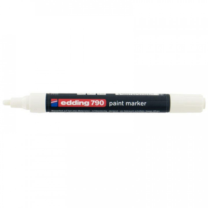 Marqueur peinture permanent E790 pointe ogive blanc. Encre peinture à trés fort pouvoir couvrant et à forte opacité.Ne contient ni xylène, ni toluène.(pas de matière inflammable, ni cancérigène). Tracé de 2 à 3mm. Encre non toxique.
