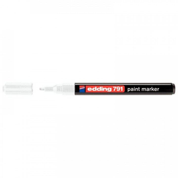 Marqueur peinture permanent E791 pointe ogive blanc. Encre peinture à trés fort pouvoir couvrant et à forte opacité.Ne contient ni xylène, ni toluène (pas de matière inflammable, ni cancérigène).Offre une grande sécurité d'utilisation.Corps plastique.Encre non toxique.Largeur de trait 1 à 2mm.