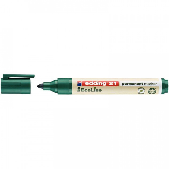 Marqueur permanent Ecoline 21 pointe ogive vert. Pointe ogive 1,5 à 3 mm. Encre permanente résistante à l'eau. 90% recyclé.