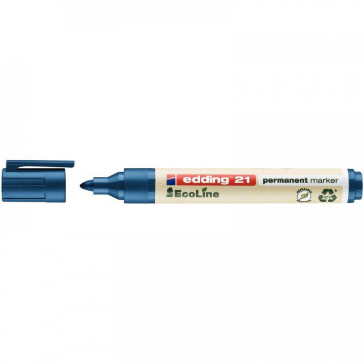 Marqueur permanent Ecoline 21 pointe ogive bleu. Pointe ogive 1,5 à 3 mm. Encre permanente résistante à l'eau. 90% recyclé.