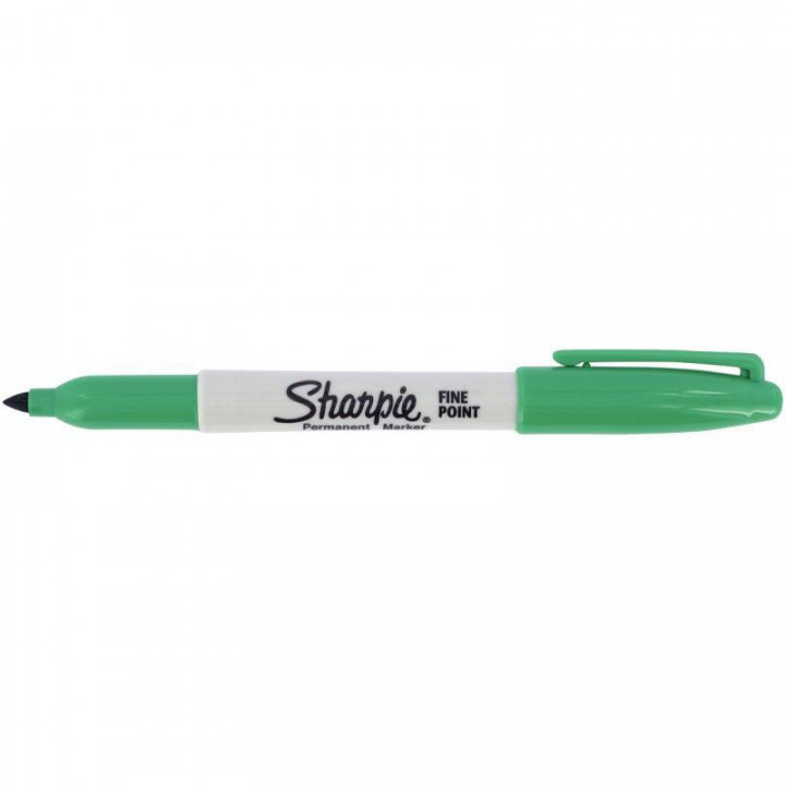 Marqueur Sharpie pointe fine ogive vert. Pointe fine 1mm. Corps plastique. Format stylo. Encre résistante à l'eau
