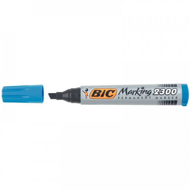 Marqueur permanent 2300 pointe biseautée 5,5mm bleu. Corps plastique. Marqueur multi-usage. Idéal pour les travaux d'extérieur et d'intérieur. Bonne tenue à la lumière à la chaleur et aux intempéries. Encre alcool : le marqueur ne séche pas même décapuchonné plus de 3 semaines.