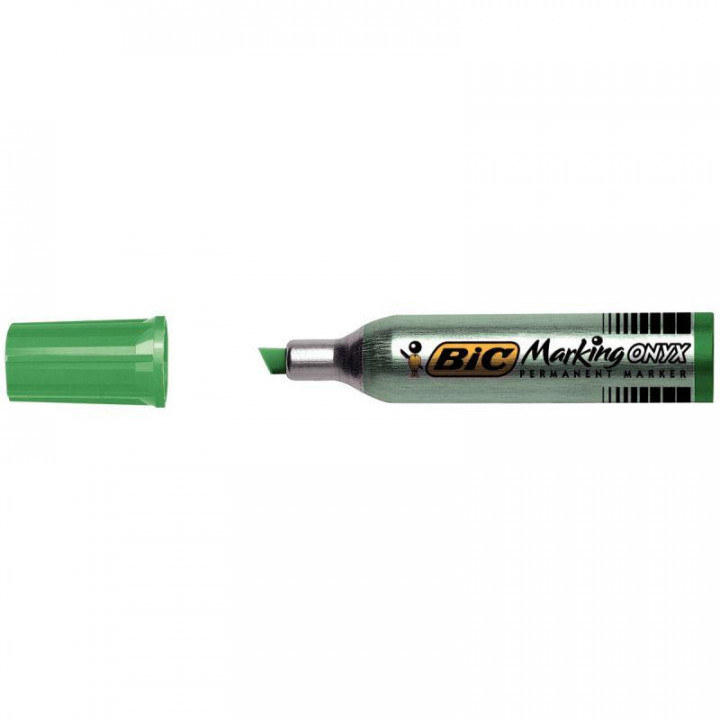 Marqueur permanent ONYX 1481 pointe biseautée vert. Encre à fort pouvoir indélébile. Idéal pour supports sales ou graisseux métal, plastique. Largeur de trait de 3,7 à 5,2 mm. Corps métal standard.