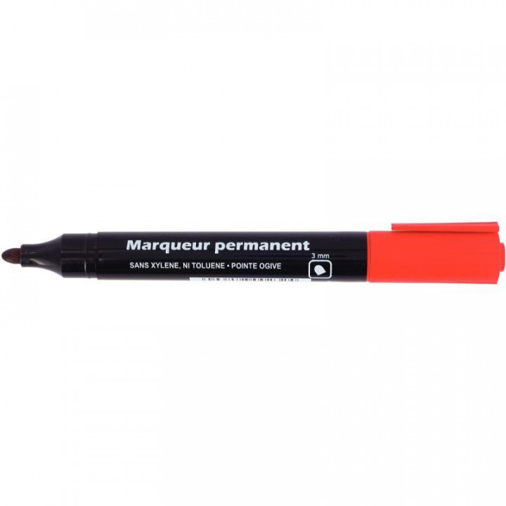 Marqueur permanent Like pointe ogive rouge. Encre à base d'alcool. Séchage rapide. Sans toluène ni xylène. Marque sur la majorité des supports.