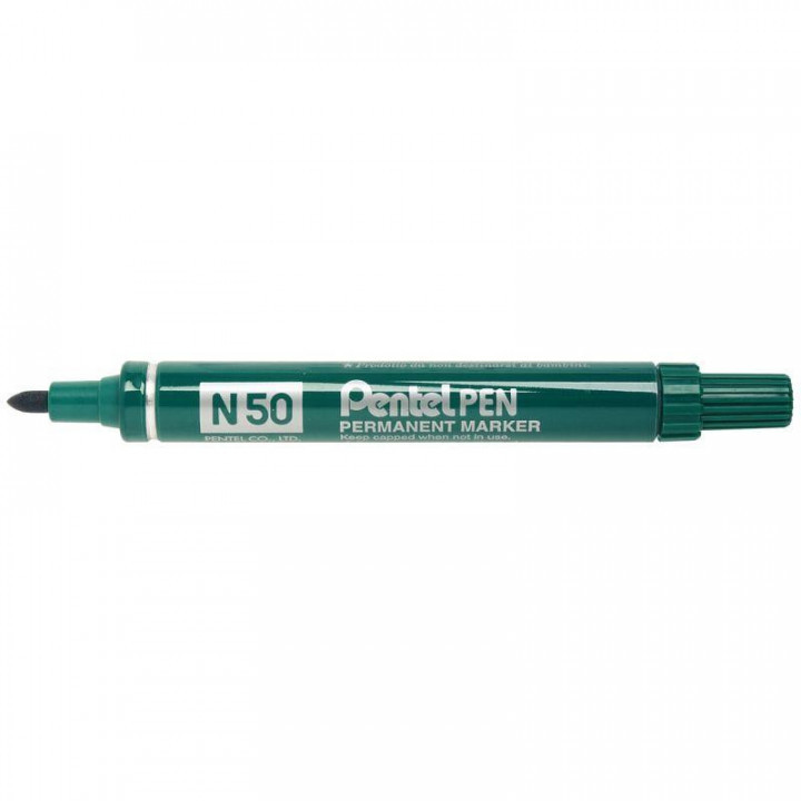 Marqueur permanent N50 pointe ogive vert. Corps aluminium résistant. Marqueur à pointe conique, doté d'une encre permanente à solvant. Utilisable sur presque toutes les surfaces. Longueur d'écriture 1000 m.