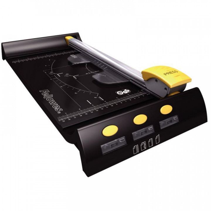Rogneuse Neutron A4 10 feuilles. Pour format A4. Lame sécurisée qui ne sort de la cartouche que par pression de la main. Système de presse ajustable pour maintenir les feuilles lors de la coupe. Livrée avec une lame coupe droite. Possibilité de rajouter 3 lames: coupe vaguelettes, prédécoupage et rainage. Base graduée (mm et rayon). Garantie 2 ans.