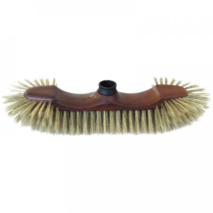 Balai en soie 30cm. Le balai 1/2 tête s'utilise pour le balayage des poussières ménagères pour l'intérieur pour sols lisses (carrelages, parquets...) S'adapte avec notre manche chromé, aluminium ou bois avec embout à vis.