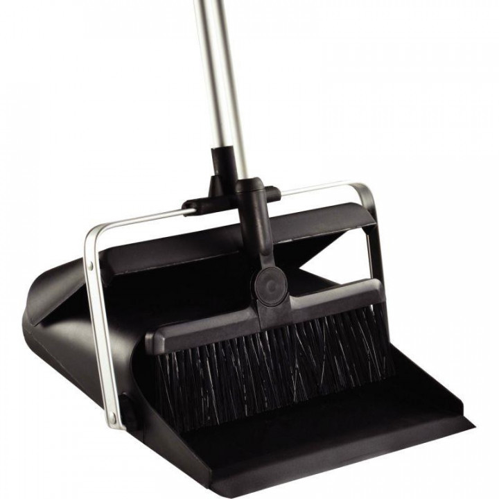 Balayette et pelle basculante. Large bord en caoutchouc. Poignées ergonomiques pour une meilleure prise en main. Manche réglable en fonction de la taille de l'utilisateur. Dimensions pelle : l. 26 x P. 30 x H. 97,5cm Dimensions balai : l. 23,5 x H. 97cm