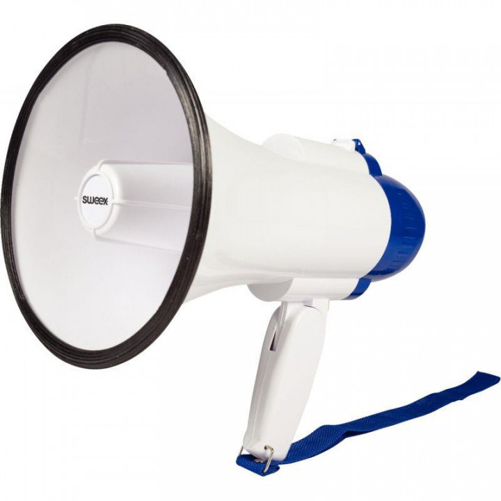 Mégaphone 10 W. En ABS. Avec sirène et microphone intégré. Réglage du volume. Portée de 250 m. Fonction d'enregistrement pour un texte de 10 secondes. Fonctionne avec 4 piles D/LR20 non fournies.