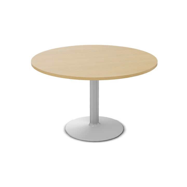 Plateau mélamine ép. 25 mm. Tables H. 73,50 cm. Tables rondes - 120 cm. Sur piétement central fixe rond