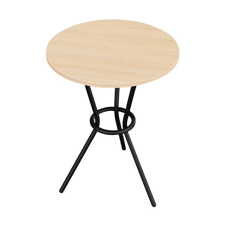 Table H105cm GABY plateau chêne naturel/piètement noir. Design et rétro. Idéal pour aménager vos espace de restauration. Look bistrot, se distingue par son style unique et chaleureux. Plateau mélaminé 25mm. Piètement métal Ø30mm équipé d'embouts arrondis en plastique noir. Finition structurée poudre époxy. Norme NF EN13501-1, classé au feu M3. Garantie 5 ans.