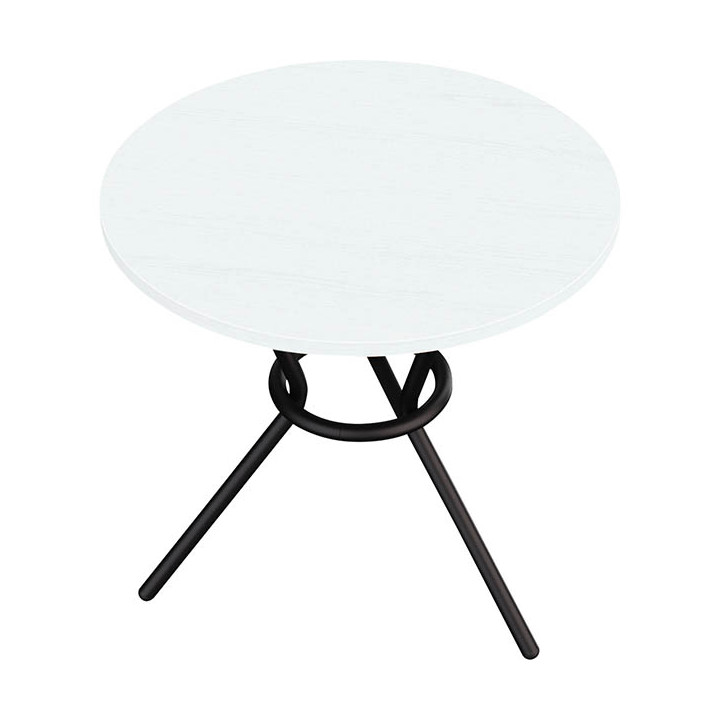 Table H74cm GABY plateau blanc/piètement noir. Design et rétro. Idéal pour aménager vos espace de restauration. Look bistrot, se distingue par son style unique et chaleureux. Plateau mélaminé 25mm. Piètement métal Ø30mm équipé d'embouts arrondis en plastique noir. Finition structurée poudre époxy. Norme NF EN13501-1, classé au feu M3. Garantie 5 ans.
