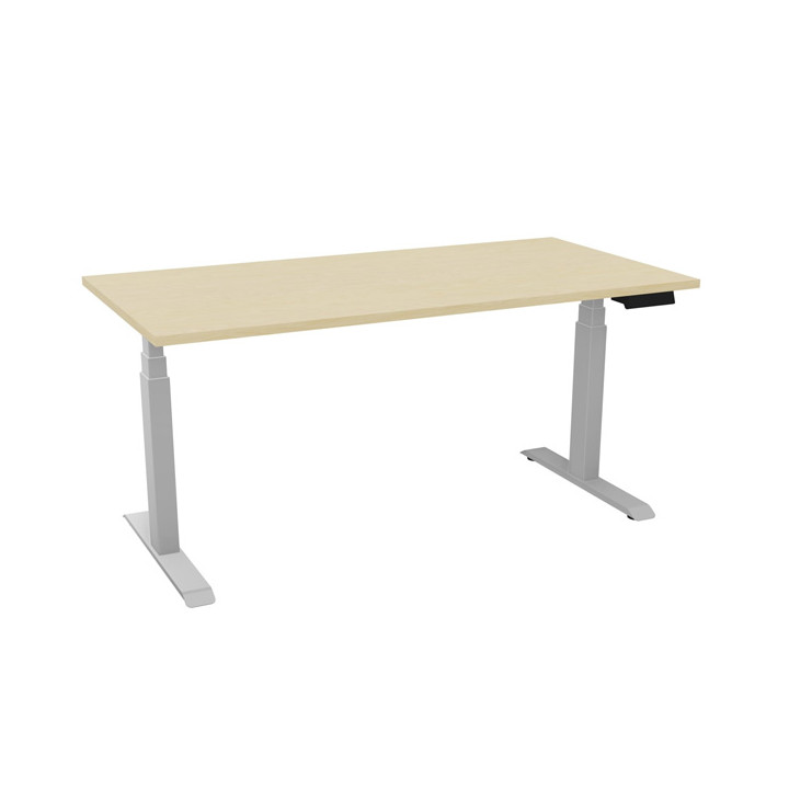 Bureau individuel Slade L160xP80cm plateau pin maritime/piètement alu. Réglable en hauteur électriquement. Plateaux: Panneaux ép. 25mm, décor traîté anti-reflets. Chants en ABS ép.2mm. Classement au feu M3. En version Bench: goulotte métallique double d'électrification pour le passage des boîtiers prises et câbles. Piètements: 2 piètements colonnes métalliques section 80x50mm. 3 bras télescopiques pour le réglage motorisé. En version Bench: piètements reliés par une barre métallique transverse L78,5xH8xP5cm ép.3mm. Système de réglage électrique en hauteur de 650 à 1300mm. Poids supporté pour un plan de travail: 120kg. Boîtier de commande digital avec 4 mémoires de position. Système anti-collision intégré. Système anti-collision plus sensible vendu en option. Garantie 5 ans.