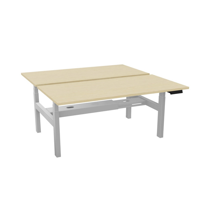 Bureau partagé Slade L160xP80cm plateau pin maritime/piètement alu. Profondeur totale 166,5cm. Réglable en hauteur électriquement. Plateaux: Panneaux ép. 25mm, décor traîté anti-reflets. Chants en ABS ép.2mm. Classement au feu M3. En version Bench: goulotte métallique double d'électrification pour le passage des boîtiers prises et câbles. Piètements: 2 piètements colonnes métalliques section 80x50mm. 3 bras télescopiques pour le réglage motorisé. En version Bench: piètements reliés par une barre métallique transverse L78,5xH8xP5cm ép.3mm. Système de réglage électrique en hauteur de 650 à 1300mm. Poids supporté pour un plan de travail: 120kg. Boîtier de commande digital avec 4 mémoires de position. Système anti-collision intégré. Système anti-collision plus sensible vendu en option. Garantie 5 ans.