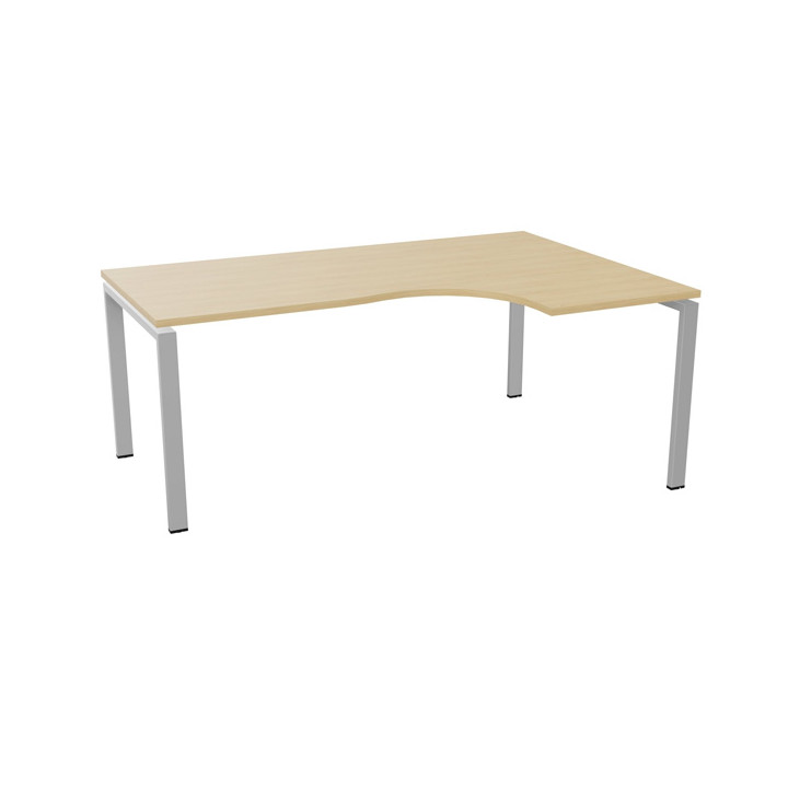 Bureau compact asymétrique 90° retour à droite L180 Conect plateau chêne naturel/piètement alu. L180 * P120 * retour 60cm. Pieds fixes. Garantie 5 ans.