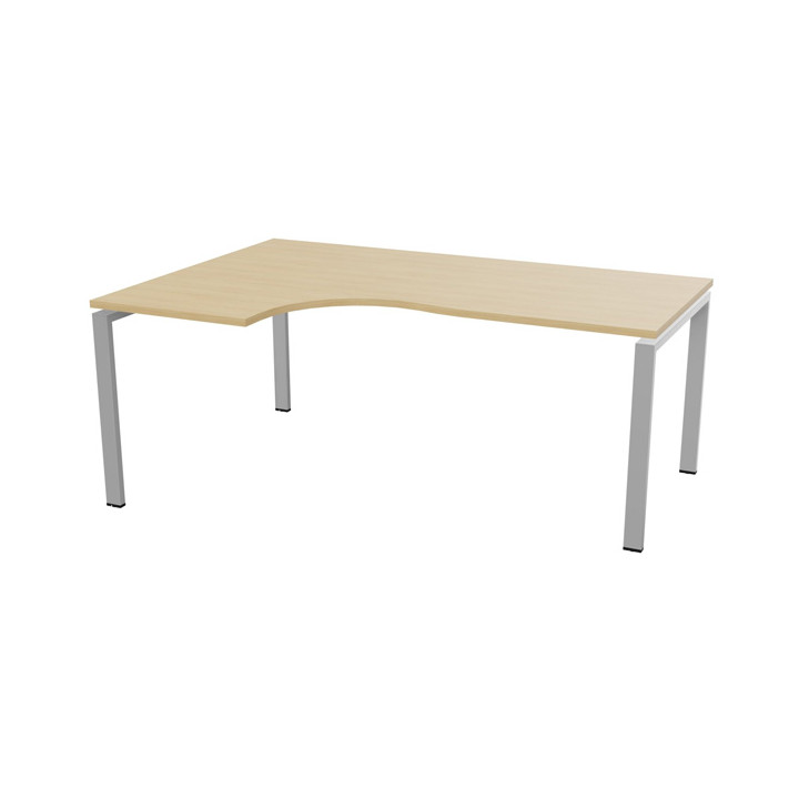 Bureau compact asymétrique 90° retour à gauche L180 Conect plateau chêne naturel/piètement alu. L180 * P120 * retour 60cm. Pieds fixes. Garantie 5 ans.