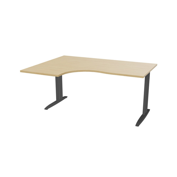 Plan compact 90° Onyx retour gauche L..160xP.120 et 60 cm plateau chêne naturel/piètement anthracite. Plateau mélamine prépercé pour l'ajout d'obturateur optionnel. Ep. 25 mm. Chant en PVC 2 mm. Structure composée de 2 piètements métalliques et d'une traverse métallique structurelle. Cache en partie supérieure du piètement voile de fond optionnel. Garantie 5 ans.