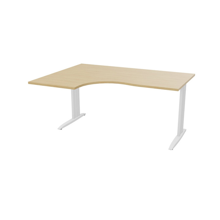 Plan compact 90° Onyx retour gauche L..160 x P.120 et 60 cm plateau chêne naturel/piètement blanc. Plateau mélamine prépercé pour l'ajout d'obturateur optionnel. Ep. 25 mm. Chant en PVC 2 mm. Structure composée de 2 piètements métalliques et d'une traverse métallique structurelle. Cache en partie supérieure du piètement voile de fond optionnel. Garantie 5 ans.
