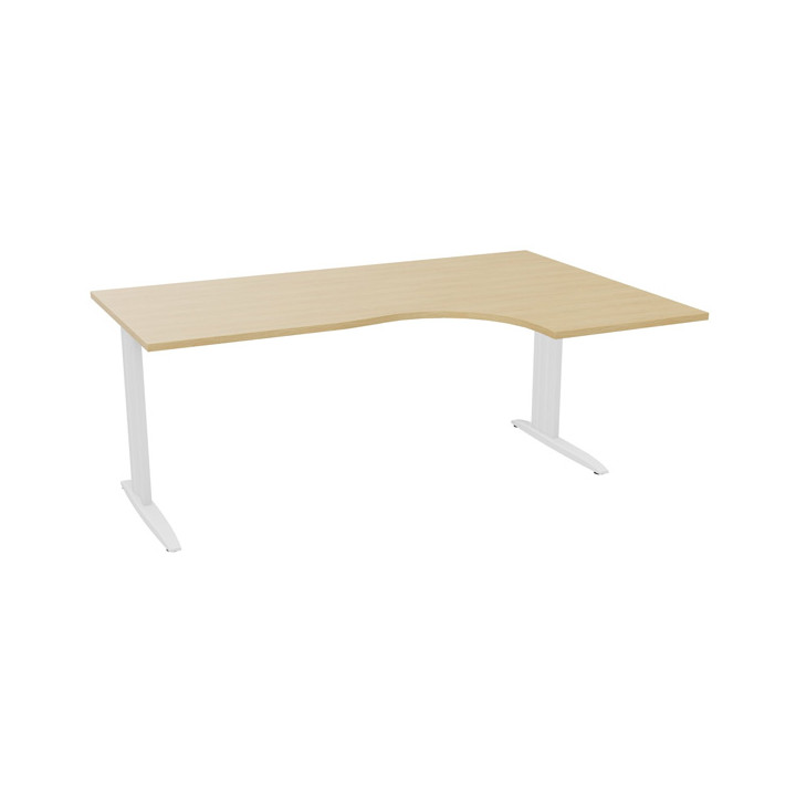 Plan compact 90° Onyx retour droite L.180 x P.120 et 60 cm plateau chêne naturel/piètement blanc. Plateau mélamine prépercé pour l'ajout d'obturateur optionnel. Ep. 25 mm. Chant en PVC 2 mm. Structure composée de 2 piètements métalliques et d'une traverse métallique structurelle. Cache en partie supérieure du piètement voile de fond optionnel. Garantie 5 ans.