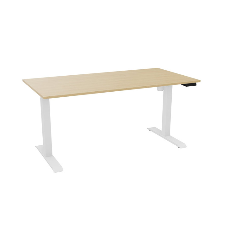 Bureau à réglage électrique Guera 2 L160xP80cm épaisseur 19mm plateau chêne naturel/piètement blanc. La solution pour réaliser rapidement la configuration adaptée à vos besoins. Des tables robustes de grande qualité de fabrication. Installation simple, ultrarapide et sans effort. Plateau mélaminé. Chants antichocs ABS 2mm. Piètement et structure en tube métal, finition époxy. 4 roulettes multidirectionnelles silencieuses Ø40mm avec freins. Hauteur: 72cm. Boîtier de commande à mémoire de position, système anticollision. Sécurité: verrouillage du plateau en position utilisation ou en position rangement. Livré monté, à plat. Garantie 5 ans.