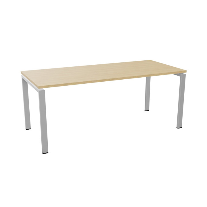Bureau fixe L180 Conect plateau chêne naturel/piètement alu. Rectangulaire L180cm * P80cm. Pieds fixes. Garantie 5 ans.