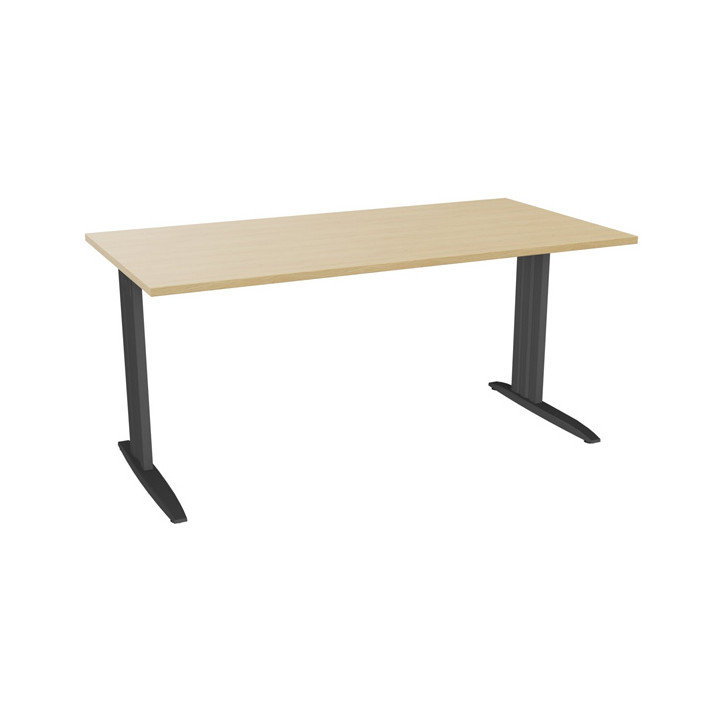 Plan droit Onyx L..160 x P.80 x H73,5 cm plateau chêne naturel/piètement anthracite. Plateau mélamine prépercé pour l'ajout d'obturateur optionnel. Ep. 25 mm. Chant en PVC 2 mm. Structure composée de 2 piètements métalliques et d'une traverse métallique structurelle. Cache en partie supérieure du piètement voile de fond optionnel. Garantie 5 ans.