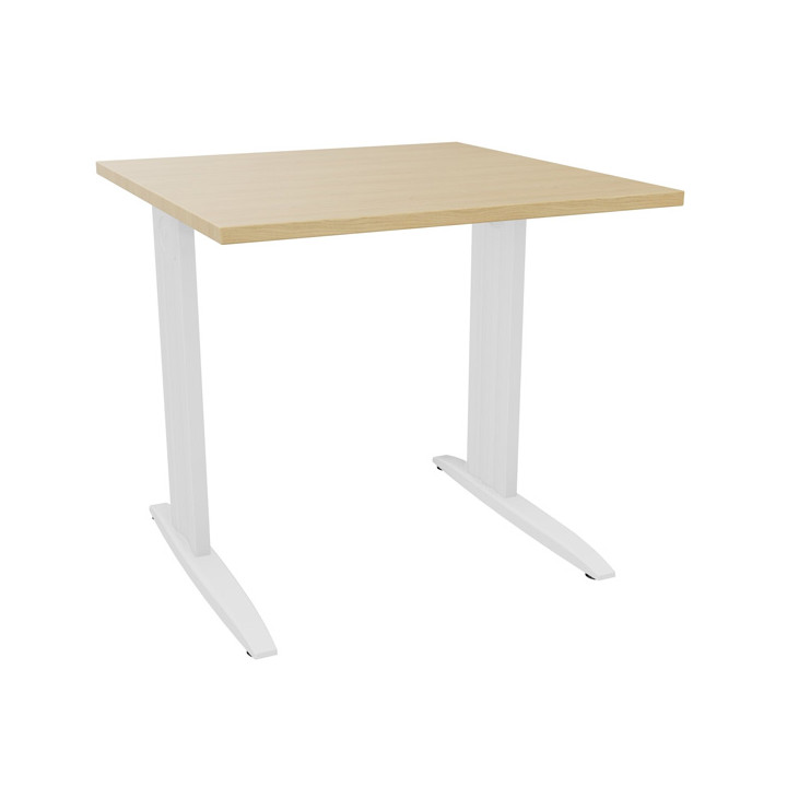 Plan droit Onyx L..80 x P.80 x H73,5 cm plateau chêne naturel/piètement blanc. Plateau mélamine prépercé pour l'ajout d'obturateur optionnel. Ep. 25 mm. Chant en PVC 2 mm. Structure composée de 2 piètements métalliques et d'une traverse métallique structurelle. Cache en partie supérieure du piètement voile de fond optionnel. Garantie 5 ans.