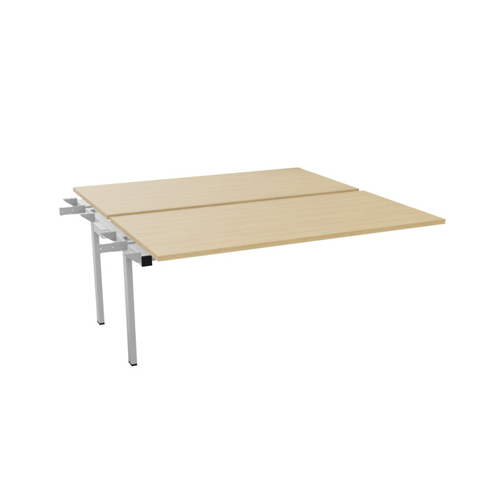 Bureau fixe suivant L160cm Conect plateau chêne naturel/piètement alu. Sur structure partagée. Plateau et pieds fixes. Garantie 5 ans.