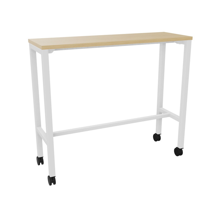 Table L120 cm x P40 cm x H104,5 cm Perform Mobile plateau chêne naturel/piétement blanc. Plateau nu mélamine. Piètement arche carrée fixe. Métal lisse. Sur roulettes. Garantie 5 ans.