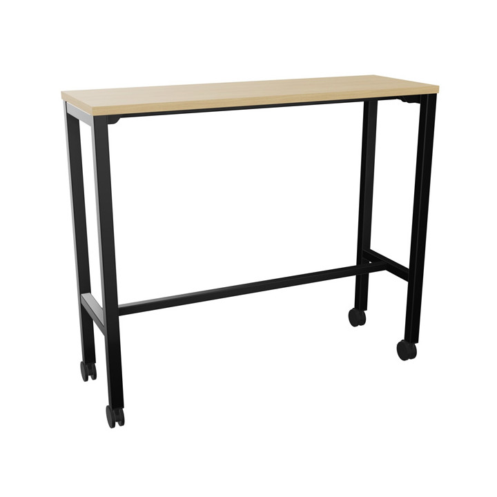 Table L120 cm x P40 cm x H104,5 cm Perform Mobile plateau chêne naturel/piétement noir. Plateau nu mélamine. Piètement arche carrée fixe. Métal lisse. Sur roulettes. Garantie 5 ans.