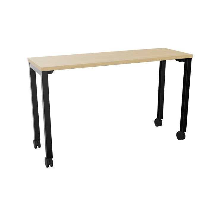 Table L120 cm x P40 cm x H73,5 cm Perform Mobile plateau chêne naturel/piétement noir. Plateau nu mélamine. Piètement arche carrée fixe. Métal lisse. Sur roulettes. Garantie 5 ans.