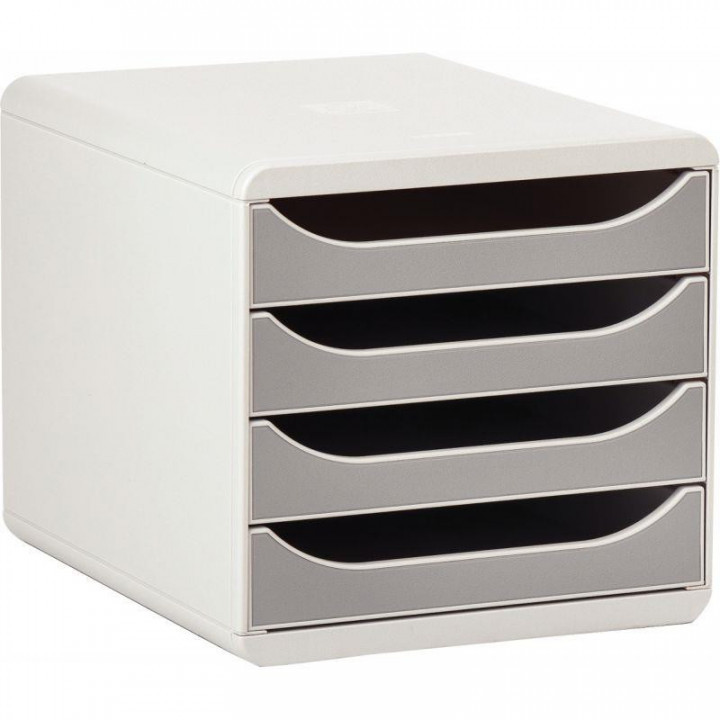 Module 4 tiroirs BIGBOX gris/gris. Ouverture petit côté.En Polystyrène antistatique et antichoc. Caisson à poser. Prise en main facile des tiroirs coulissants.Dimensions intérieure du tiroir : 24,5 x 32,4 cm. Dimensions du caisson : 278 x 347 x 267 mm.