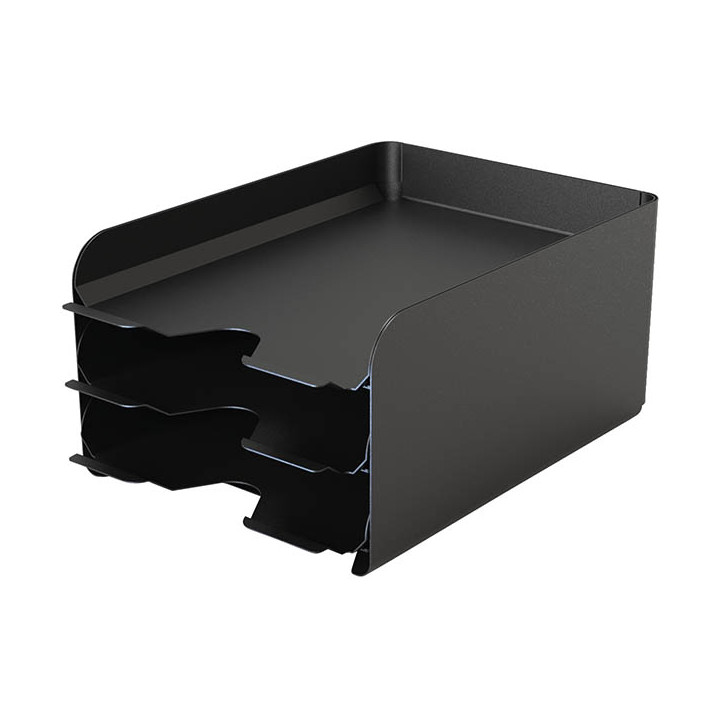 Module 3 tiroirs métal noir. Module monobloc équipé de 3 corbeilles de rangements. Grande capacité de stockage pour document A4 +(24x32 cm) Hauteur des compartiments : 6.5 cm