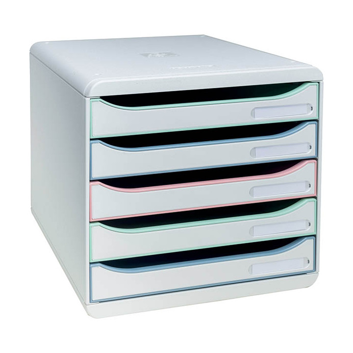 Module 5 tiroirs BIGBOX plus AUTENTIK. Caisson individuel à 5 tiroirs pour documents au format A4+. Monobloc, ultra-rigide. Superposable grâce à 4 reliefs prévus à cet effet. Tiroirs ouverts permettant l'introduction directe de documents sans ouvrir les tiroirs. Coulissement parfait des tiroirs, avec butée de sécurité et porte-étiquettes