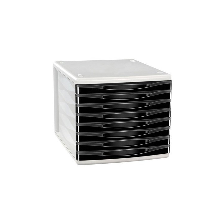 Module de tri à 8 tiroirs, aux décors mats et brillants. Tiroirs très larges, acceptant des documents jusqu’au format 24 x 32 cm. Chaque tiroir peut contenir jusqu’à 235 feuilles A4. Patins antidérapants évitent de rayer le bureau. 8 ergots assurent une parfaite superposition des blocs entre eux. Dimensions : 30 x 36,8 H 26,5 cm. Polystyrène antichoc très robuste, 100% recyclable.