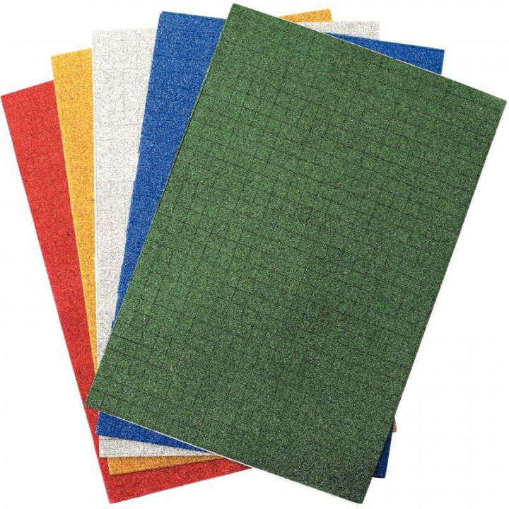 Sachet de 5 feuilles de mosaïque en mousse format 21 x 31 cm. Coloris : or, argent, rouge, bleu et vert. En mousse EVA pailletée. 3000 mosaïque, soit 600 par feuille. Dimensions mosaïque : 1 x 1 cm. Dimensions feuille : 21 x 31 cm.