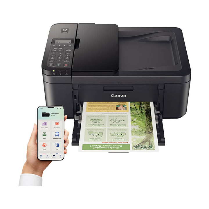 Multifonction jet d'encre Canon Pixma TR4755i. Idéale pour le télétravail, cette imprimante 4-en-1 alliant connectivité et productivité - Connectivité Wi-fi - Scannez ou copiez 20 pages à la fois - Economie de papier - Impression de photos sans bordure - Economie d'energie