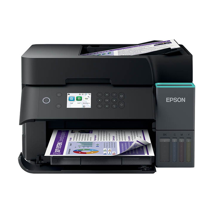 Multifonction jet d'encre EPSON ECOTANK ET-3950. Cette imprimante multifonction est idéale pour réduire les coûts d'impression grâce à ses réservoirs d'encre rechargeables. Elle offre : - Économies importantes : Jusqu’à 95 % d’économies sur l’encre, avec jusqu’à 3 ans d’encre incluses (jusqu’à 15 100 pages en noir et 5 500 en couleur). - Fonctionnalités pratiques : Impression, copie, numérisation, Wi-Fi, Wi-Fi Direct, Ethernet, impression recto verso, impression photo sans marge, écran LCD 6,1 cm, bac papier 250 feuilles, chargeur automatique de documents 30 pages. - Confort d’utilisation : Réservoirs faciles à remplir avec détrompeur de couleur, affichage du niveau d’encre en façade, bac de sortie automatique. - Durabilité : Technologie Zéro Chaleur prolongeant la durée de vie de la tête d’impression, garantie jusqu’à 100 000 pages ou 1 an. Connectivité moderne : Compatible avec les appareils mobiles, réseaux Wi-Fi double bande et maillés.