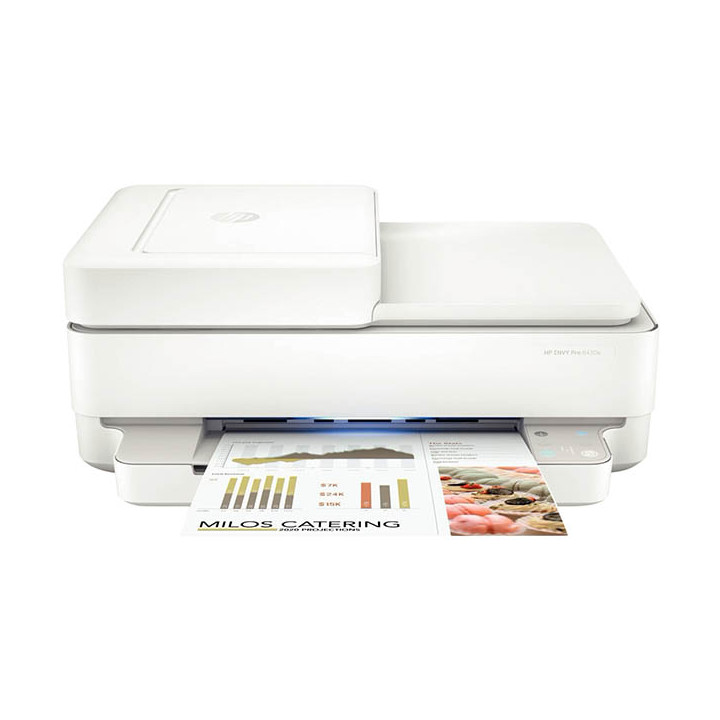 Multifonction jet d'encre HP 6530E. Imprimante couleur tout-en-un de HP, sans fi let avec chargeur automatique de documents Netteté et couleurs éclatantes pour vos documents et vos photos Grâce à la technologie fidèle à l’écran de HP, imprimez des documents et des photos sans bordure qui reflètent fidèlement ce que vous voyez sur votre écran. Créez des cartes en personnalisant le dos de vos photos grâce à la fonction d’impression automatique recto-verso. Impression facile depuis n’importe quel appareil. Parcourez facilement les options d’impression grâce à l’écran tactile couleur intuitif de HP. Grâce à la connexion Wi-Fi double-bande de HP avec réinitialisation autonome, votre connexion se rétablit automatiquement en cas d’interruption. L’imprimante couleur tout-en-un sans fi l de HP est idéale pour les photos et les impressions de tous les jours. Profitez de couleurs éclatantes pour vos photos, numérisez, copiez et imprimez en recto-verso. Élégante conception compacte avec écran tactile pour une expérience optimale. Travaillez rapidement et en toute liberté : le chargeur automatique de documents de 35 pages accélère la numérisation et la copie de plusieurs pages. Un design durable et élégant Modernisez votre espace de travail grâce à l’imprimante élégante et compacte de HP, qui s’intègre parfaitement dans votre bureau. Optez pour une imprimante HP au design durable, fabriquée avec 60 % de plastique recyclé.