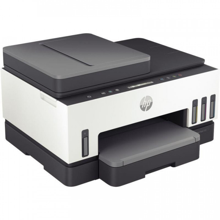 Multifonction jet d'encre HP Smart Tank 7305. Impression, numérisation et copie. Chargeur automatique de 35 pages. Connectez votre smartphone ou votre tablette directement avec votre imprimante et imprimez facilement même sans accès au réseau. Imprimez jusqu'à 12000 pages en N/B ou jusqu'à 8000 pages en couleurs. Rechargez facilement votre réservoir d'encre avec des flacons sans éclaboussures et refermables. Garantie 1 an.