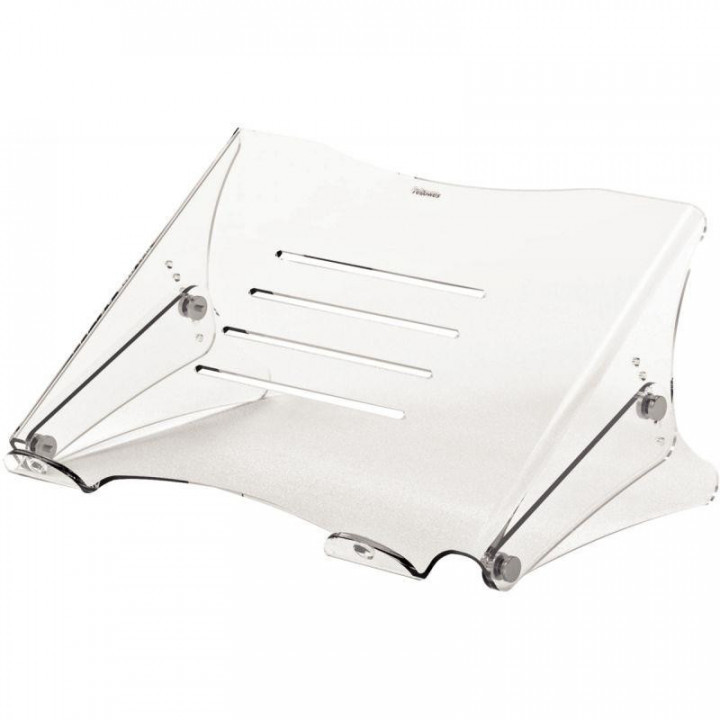 Support ordinateur portable Clarity. Se fond parfaitement dans tous types d'espaces de travail grâce à son design de qualité en acrylique transparent de 4mm. Hauteur ajustable de 134 à 204mm en 5 étages. Convient aux ordinateurs portables jusqu'à 15" et capacité de charge maximale de 6kg. Fentes d'aération favorisant la circulation de l'air. H13,4xL27xlg35cm.