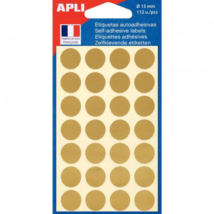 Etui de 112 pastilles adhésives diamètre 15 mm or. Idéales pour la codification, le classement, le repérage ou la rétroprojection.
