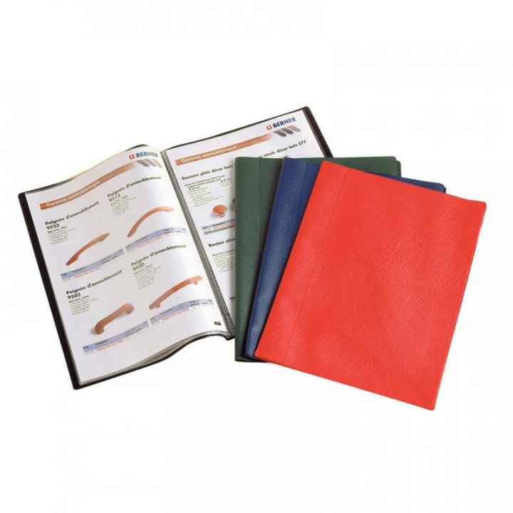 Protège-documents HUNTER 100 vues 50 pochettes bleu foncé. Couverture souple et opaque en PVC 3,2/10ème, aspect grain cuir. Pochettes transparentes en polypropylène lisse anti transfert d'encre et antistatiques. Parfaite ouverture à plat. Ouverture en angle des pochettes pour une insertion facile des documents. Pour format A4.